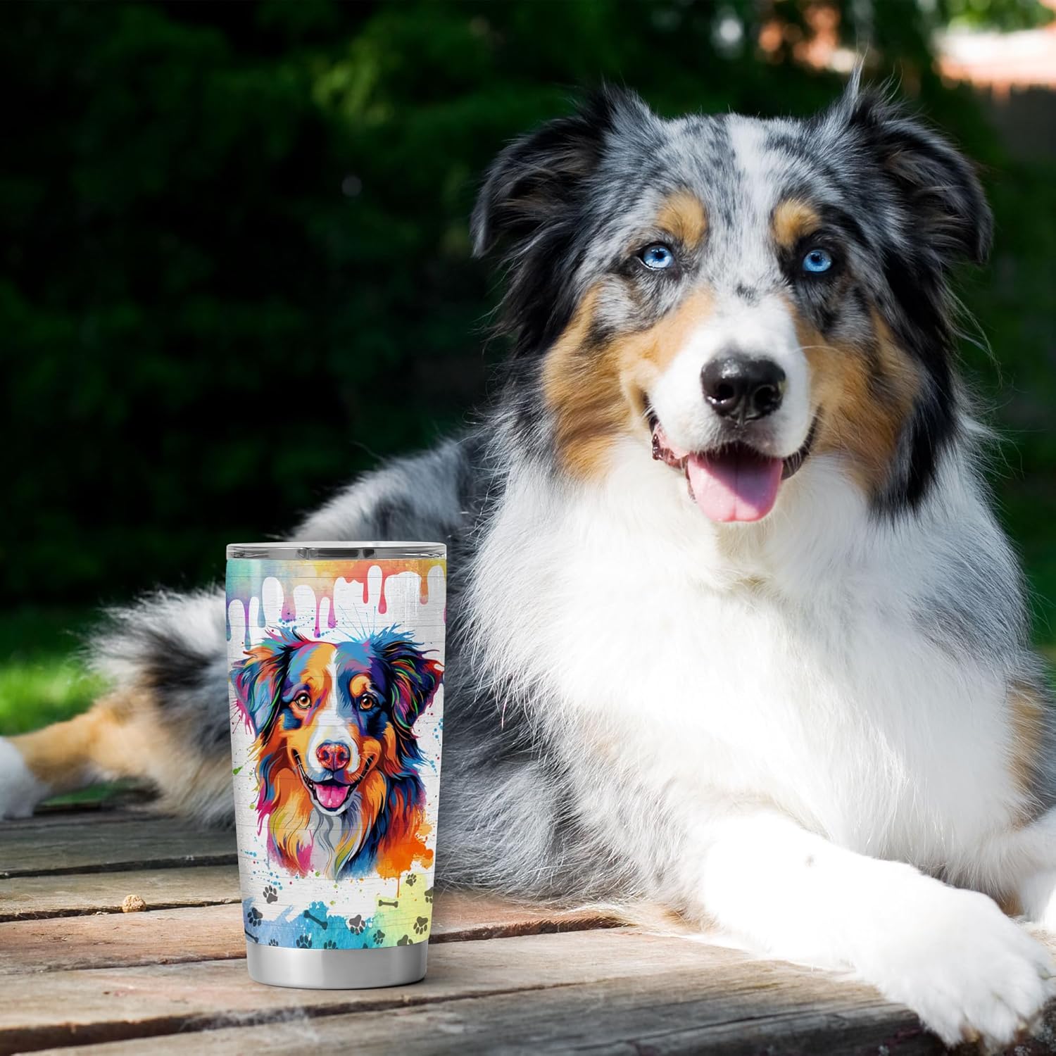 Australian Shepherd Tumbler – 20oz Stainless Steel Tumbler Cup Mug, Funny and Unique Gift for Aussie Dog Owners, Perfect for Mothers Day, Fathers Day, Birthday, and Anniversary Celebrations